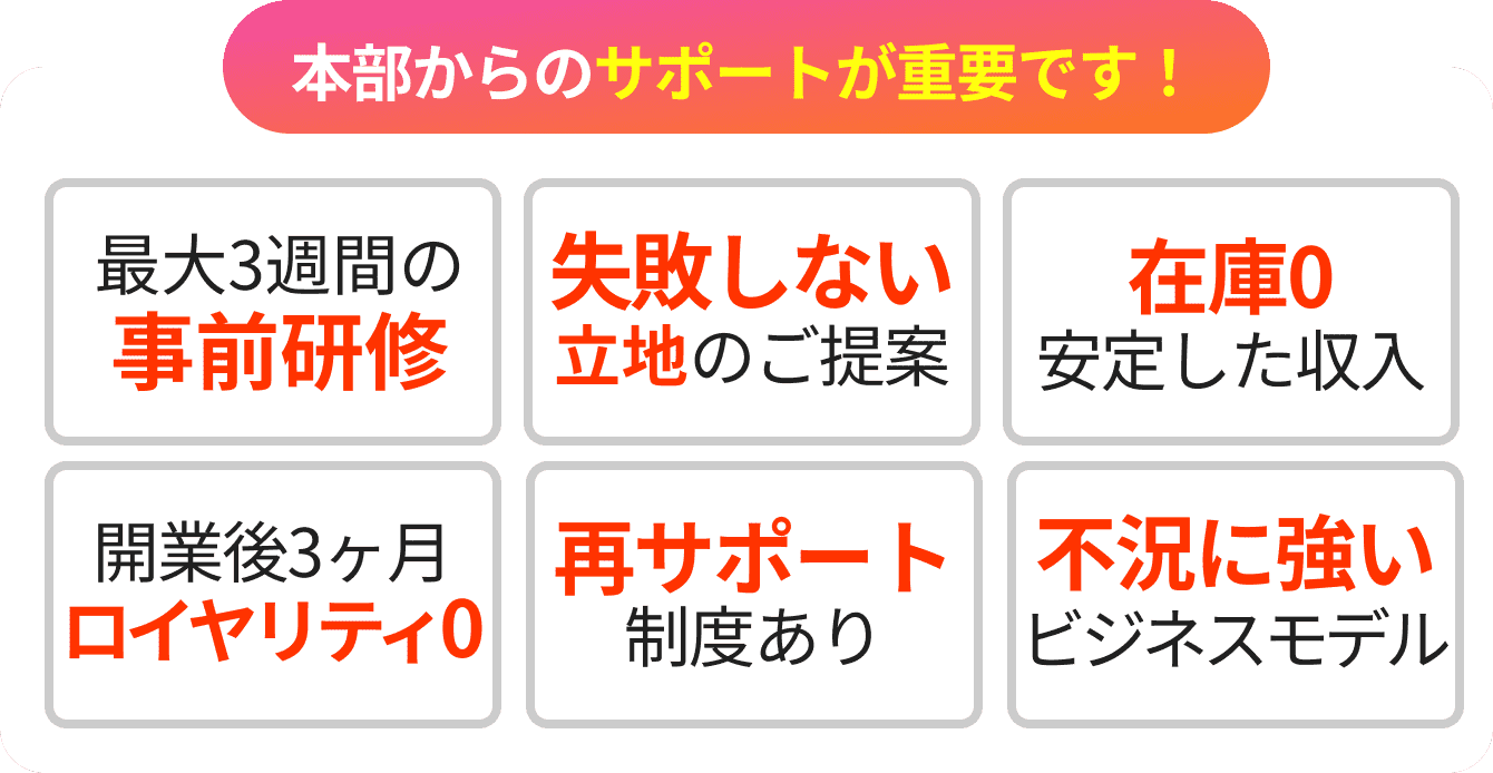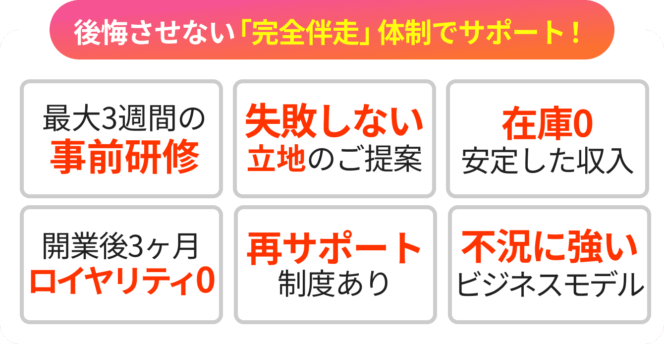 不採算撤退0を達成! 開業前 開業後 の失敗させない 6つの安心サポート